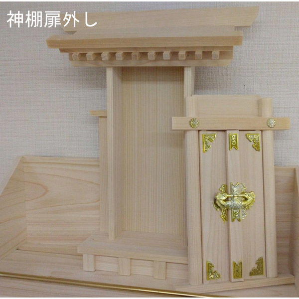 | サイズ | セット外寸:幅420×奥行155×高さ350mm(神棚込み) 神棚内寸:幅92×奥行35×高さ270mm |